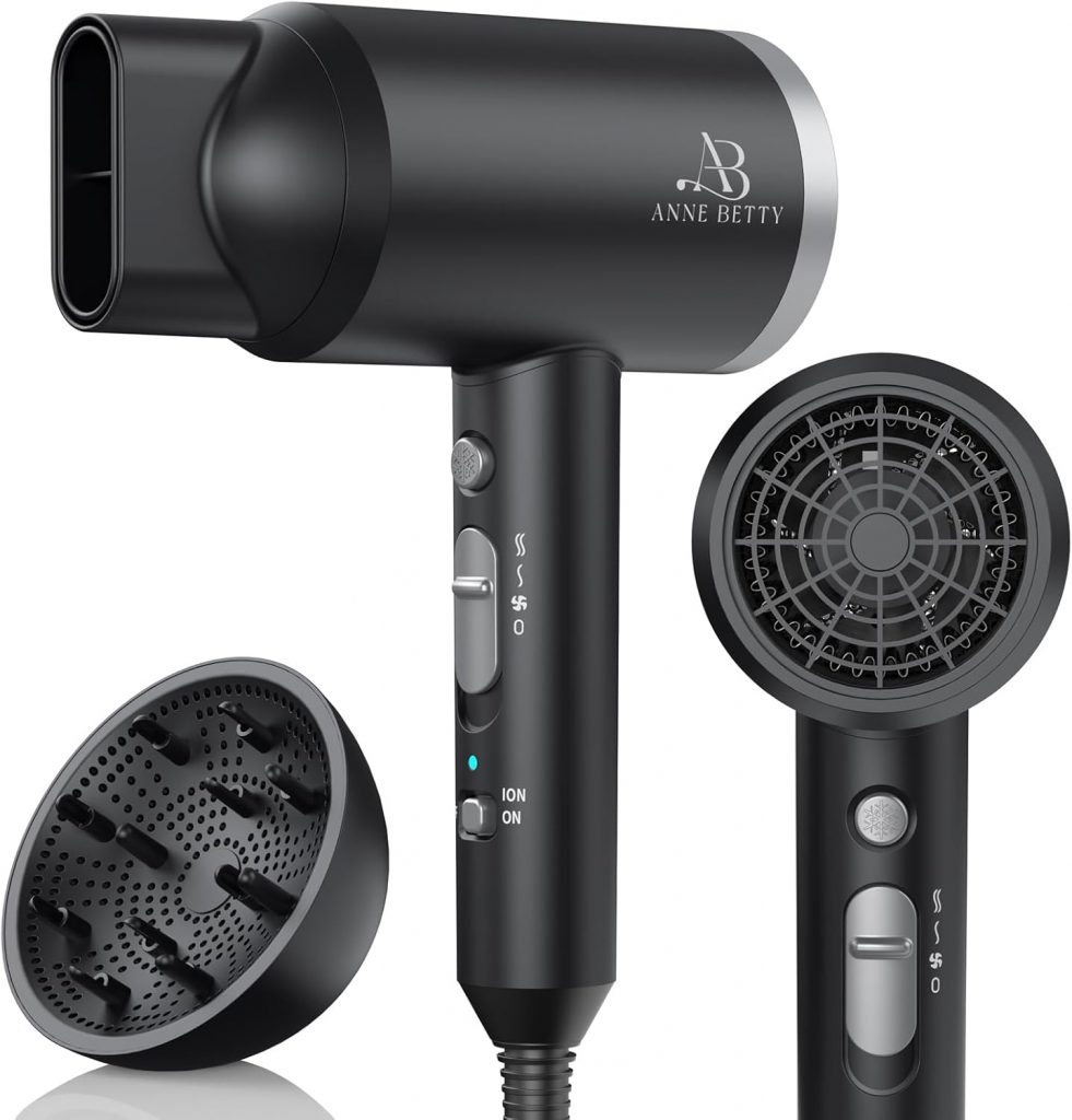 ANNE BETTY Ionic Hair Dryer with Diffuser – Black