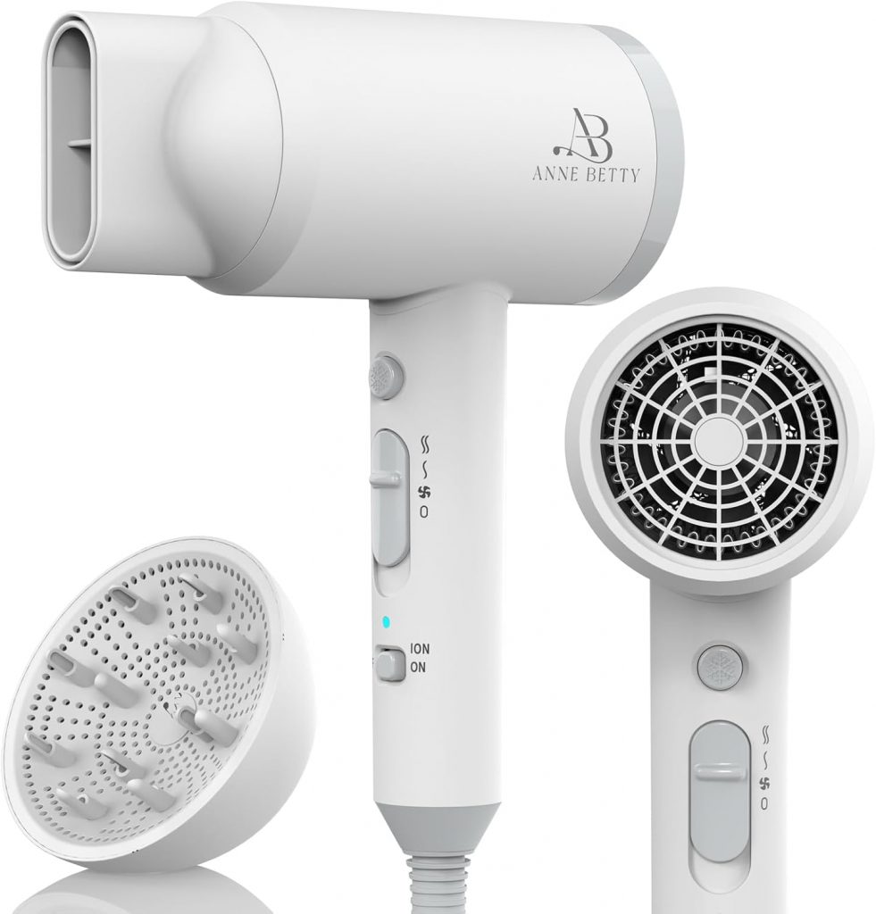 ANNE BETTY Ionic Hair Dryer with Diffuser, Powerful 1800W Blow Dryer for Women & Men, Fast-Drying Hair Dryer with Nozzle for Home, Salon, Travel